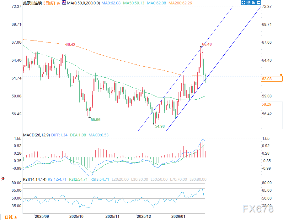 反之,若200日移动平均线支撑有效,多头有望推动油价反弹至65美元上方;若能突破66.50美元的前期高点,则可能打开向70美元关口冲击的空间。